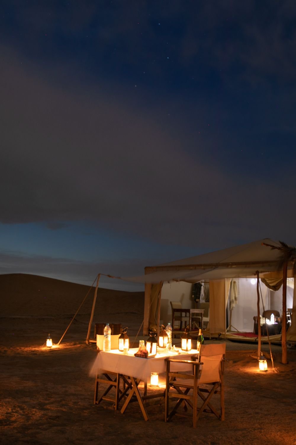 Enjoy breakfast and meditation before a scenic 4x4 ride to a luxury desert camp. Wander the dunes, practice yoga at sunset, participate in a fire ceremony, and end the day with a candlelit dinner under the Sahara sky.
